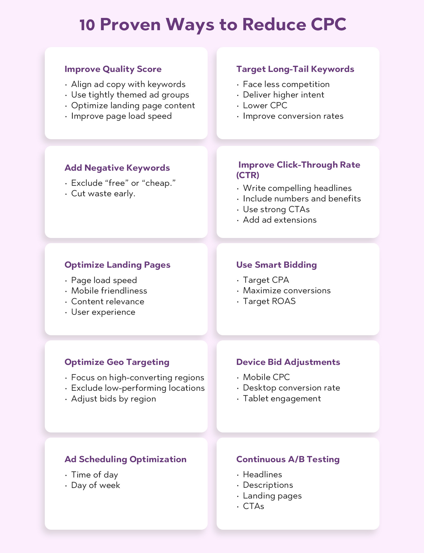 Lower CPC doesn’t mean chasing cheap clicks. It means paying less for qualified traffic. When you align keywords, ads, landing pages, and bidding strategies, costs fall naturally.