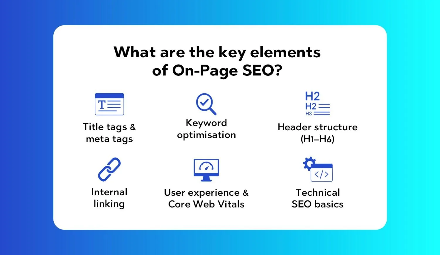 On-Page SEO refers to all the optimisation work you do inside your website to help search engines and users understand what each page is about.