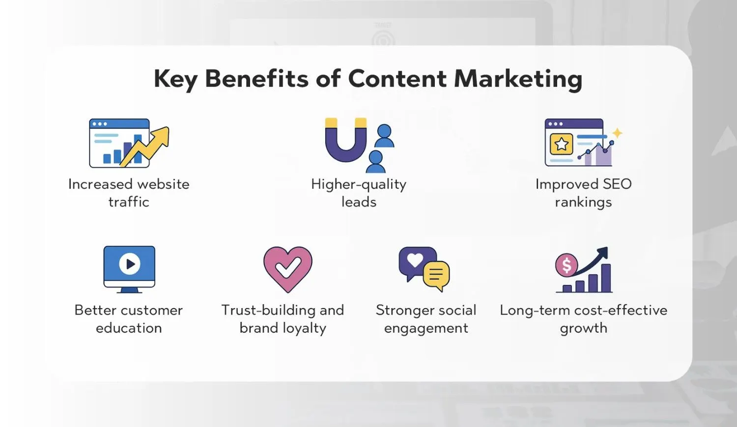 Content marketing is important because it helps you attract the right audience, build trust, and nurture prospects until they are ready to buy. Instead of relying only on ads, you create assets that consistently bring traffic, leads, and sales while strengthening your brand over time.